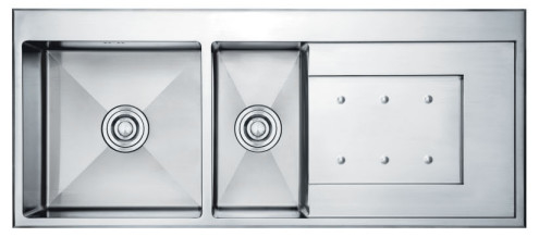 Lavatórios simples compactosOs desbordamentos são disponíveis em larguras de bacias de 250 a 810 mm.A variante com placa de drenagemÉ especialmente adequado se lavar a mão de vez em quando, ou se quiser usar a superfície para preparar comida.multitarefavai adorar oLavatórios duplos: enquanto lava os vegetais na pequena bacia (largura 180 mm), enche também a panela designada na grande bacia (largura 450 mm).Se você tem que manusear regularmente recipientes grandes ou pratos de panificação, a variante com duas grandes bacias seria a escolha ideal (cada uma com 430 mm de largura).