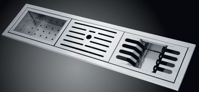 Uma unidade de acessórios combinados, uma pia INOVI e uma torneira de cozinha combinada, todas as suas necessidades operacionais serão atendidas.soluções convenientes para controlar a águaA torneira de cozinha fornecida com o sistema de sua escolha pode ser operada separadamente na borda frontal da pia.Benefício da máxima flexibilidade e qualidade.