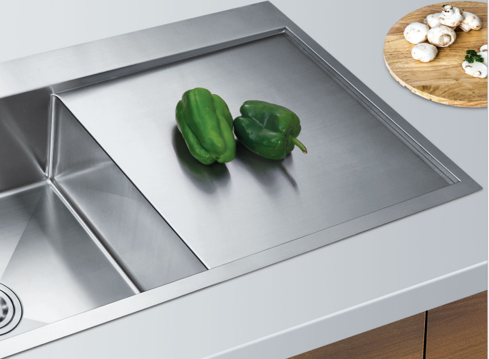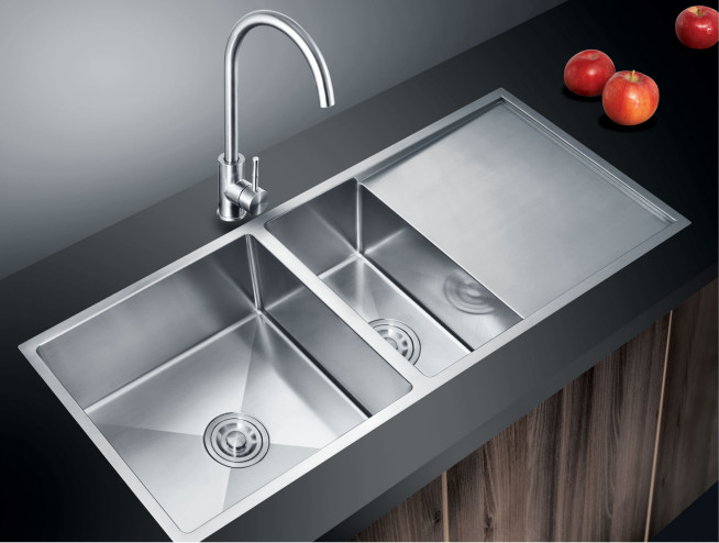 Lavatórios simples compactosOs desbordamentos são disponíveis em larguras de bacias de 250 a 810 mm.A variante com placa de drenagemÉ especialmente adequado se lavar a mão de vez em quando, ou se quiser usar a superfície para preparar comida.multitarefavai adorar oLavatórios duplos: enquanto lava os vegetais na pequena bacia (largura 180 mm), enche também a panela designada na grande bacia (largura 450 mm).Se você tem que manusear regularmente recipientes grandes ou pratos de panificação, a variante com duas grandes bacias seria a escolha ideal (cada uma com 430 mm de largura).