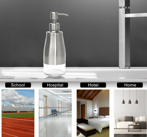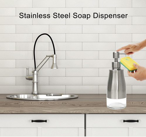 Há uma garrafa de vidro dentro doDispensador de sabão de mesa de cozinha, e a superfície da casca de aço inoxidável é pulverizada com verniz anti-impressões digitais, o que faz com que o dispensador de sabão não tenha ferrugem e vazamento!
